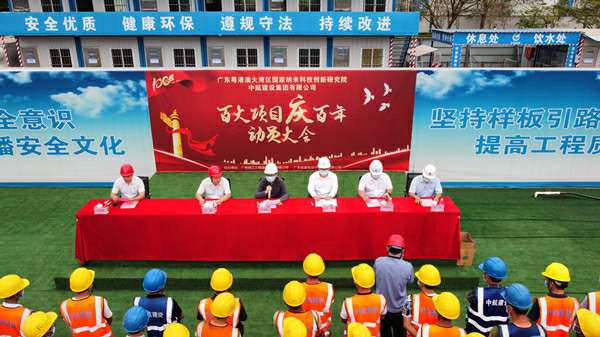 2021年3月29日上午,“百大项目庆百年”动员大会在集团公司承建的广州纳米生物安全中心总部园区一期项目现场隆重举行。建设单位广州纳米产业投资有限公司总经理李佩弦,广州珠江工程建设监理有限公司副总经理李晓光、分公司副总经理赵杰,广东省建筑设计研究院有限公司院副总工程师郭勇,乐动网·网站官网-乐动(中国)南方工程有限公司总经理、项目总指挥徐刚,项目书记招国樑以及各专业分包单位相关人员参加活动。