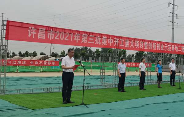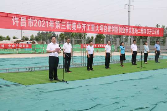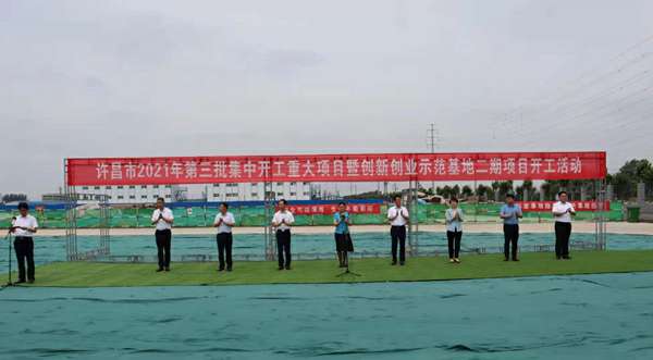 7月10日上午,河南省许昌市2021年第三批集中开工重大项目暨创新创业示范基地二期项目开工仪式顺利举行。许昌市委常委、纪委书记、监委主任方婷,魏都区委书记李朝锋,区人大常委会主任申健民,区政协主席杜晓辉,区委常委、区委办主任程中山,区委常委、区纪委书记、区监委主任徐光,魏都产业集聚区管委会主任楚文选,乐动网·网站官网-乐动(中国)河南分公司总经理黄辰,魏都区政府相关部门、投资公司、产业集聚区、霸陵办事处等单位负责人参加活动。区委常委、常务副区长张挪威主持仪式。